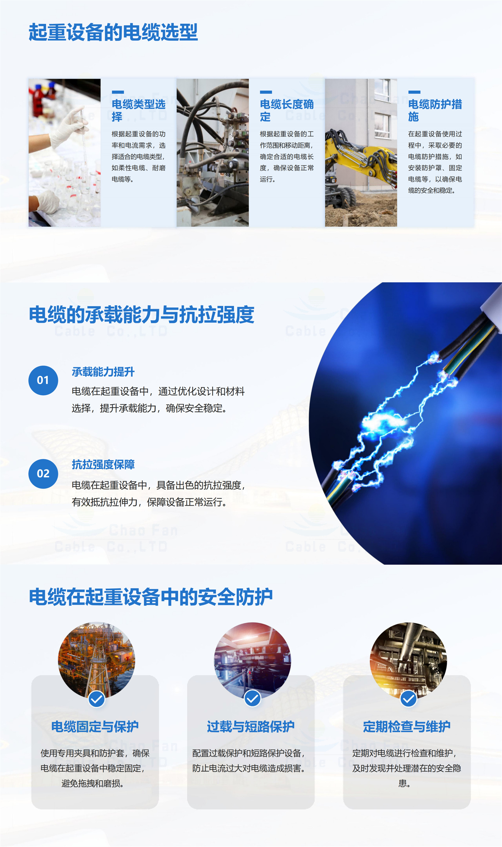 3.高效防水性能:該電纜采用防水材料制造,具有良好的防水性能,能夠有效防止水分對(duì)電纜的影響,保證起重機(jī)的正常運(yùn)行。