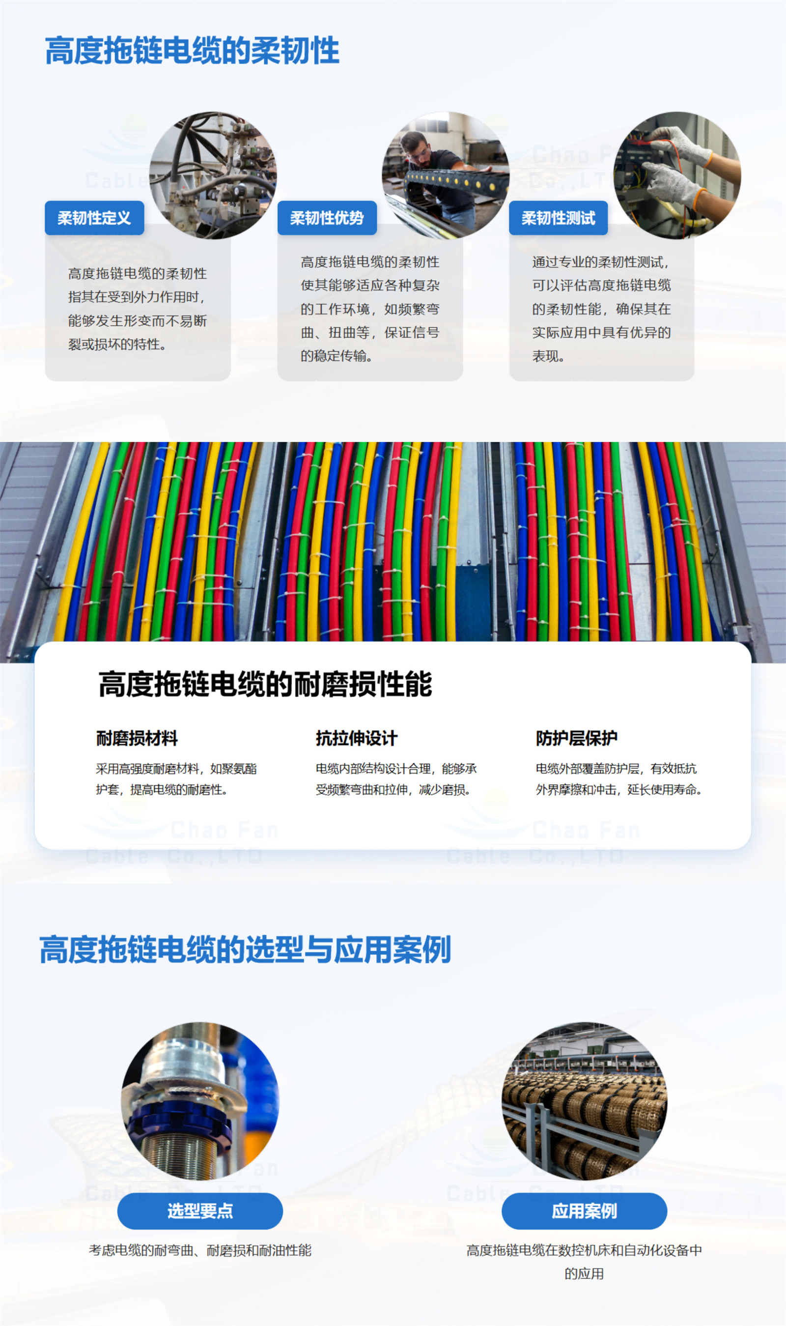 適用于干燥或潮濕的室內(nèi),無強(qiáng)應(yīng)力緩釋或強(qiáng)制引導(dǎo)的自由連續(xù)往 復(fù)運(yùn)動(dòng)下的安裝,工業(yè)使用環(huán)境下的頻繁彎曲場(chǎng)合,如激光機(jī)械切 割機(jī)、木工機(jī)械、機(jī)床加工設(shè)備、物流輸送系統(tǒng)、起重機(jī)場(chǎng)合等, 用于大行程場(chǎng)合。